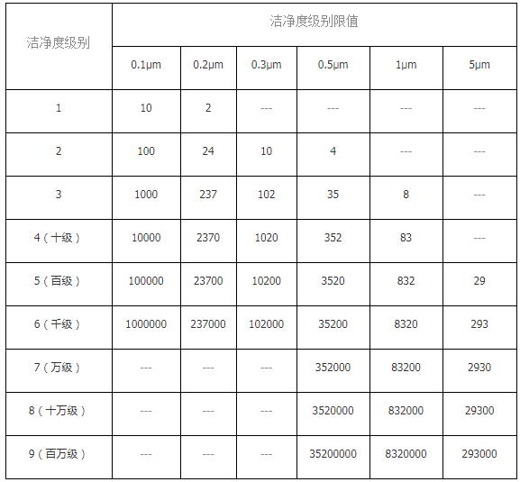 GB(潔凈廠房設計規范)空氣懸浮粒子的標準標準: