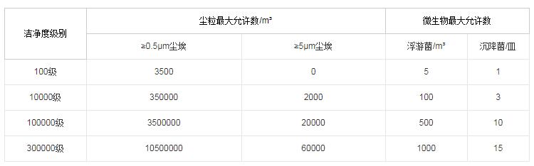 中國GMP(藥品生產質量管理規范)的凈化車間空氣潔凈度標準表: