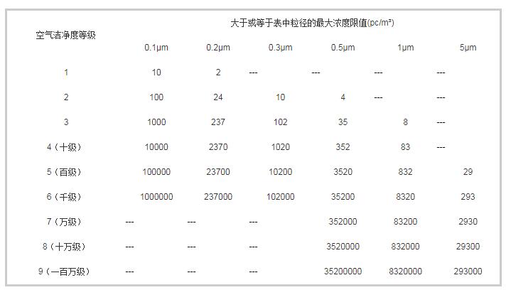 ISO凈化車間空氣潔凈度標準表